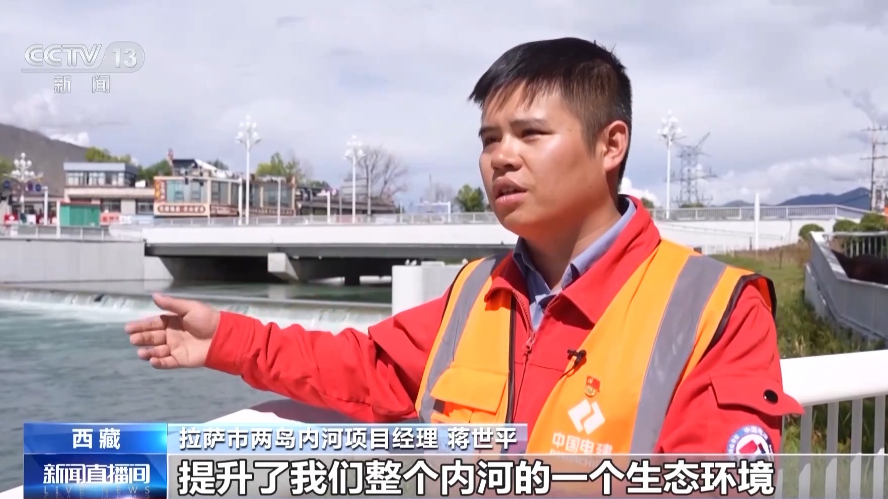 拉薩市兩島內(nèi)河項(xiàng)目經(jīng)理 蔣世平:通過閘的拆除重建,改成這種生態(tài)景觀閘,提升了整個(gè)內(nèi)河的生態(tài)環(huán)境,通過這個(gè)閘的調(diào)蓄,要擋住拉薩河主河的洪水進(jìn)入內(nèi)河。