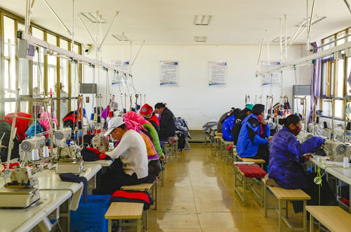 西藏阿里地區(qū)噶爾縣獅泉河鎮(zhèn)康樂新居是由5個縣區(qū)的易地扶貧搬遷戶組成的村子,共714戶3152人。為鞏固脫貧攻堅成果,方便農(nóng)牧民群眾就近就業(yè),增加居民收入,2017年開始,這里成立了服裝、地毯加工廠,搬遷后的農(nóng)牧民群眾既掌握了技能,也改善了生活條件。