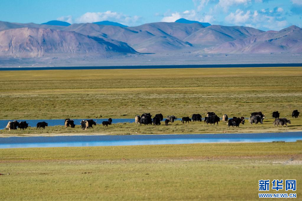 在西藏阿里地區(qū)措勤縣扎日南木錯(cuò)湖畔拍攝的牦牛。 新華網(wǎng) 旦增努布 攝