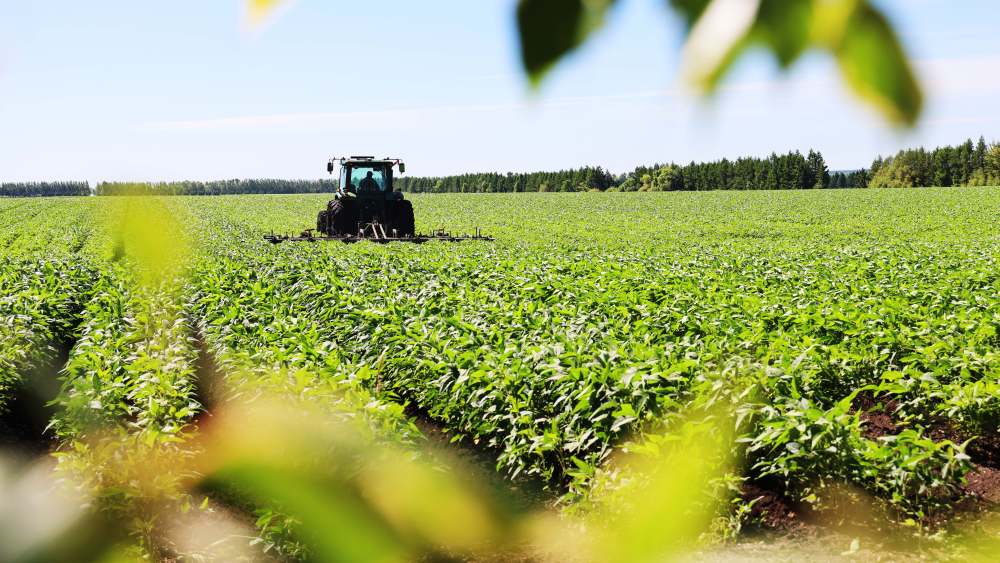 山東省東營市墾利區(qū)墾利街道種糧大戶袁訓(xùn)國撥開濃密的葉片,仔細(xì)查看大豆結(jié)莢情況?!霸蹅冞@地,以前種別的豆子一畝收300斤就不錯(cuò)了,現(xiàn)在你看這長(zhǎng)勢(shì),畝產(chǎn)預(yù)計(jì)能超600斤!”