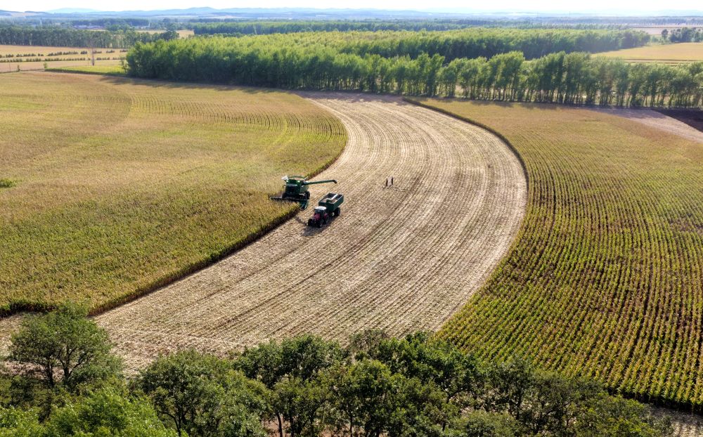 秋高云淡,黑龍江省七臺(tái)河市勃利縣的玉米地里一派繁忙景象。大型收割機(jī)往來穿梭,飽滿的玉米棒被自動(dòng)精準(zhǔn)收入機(jī)身。脫粒后,金燦燦的玉米粒源源不斷涌入隨行的運(yùn)糧車。