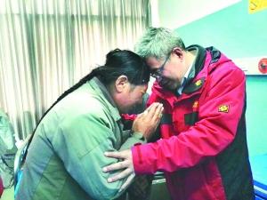今 年5月31日,那曲地區(qū)比如縣一名14歲的藏族男孩和父親在采挖蟲草過程中,突遭棕熊襲擊,父親身亡,男孩重傷。浙江援藏干部聞訊痛心之余,第一時(shí)間捐款 獻(xiàn)愛心。圖為李華(右)在醫(yī)院探望受傷男孩時(shí),向其家人表示慰問。當(dāng)天,李華在微信朋友圈中感慨:“冬去春來已三載,風(fēng)雪歷練盡酸甜。兩額一碰無限意,惟 留大愛化冰川。”