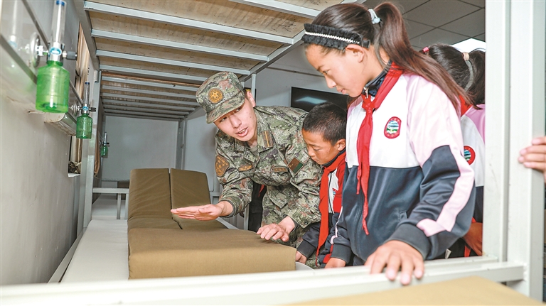 屏幕那頭,孩子們好奇地提問:“叔叔,你們那里冷嗎?”“你們那里會有高原反應(yīng)嗎?”官兵們耐心解答,還特意展示了高原防寒裝具和制氧設(shè)備。