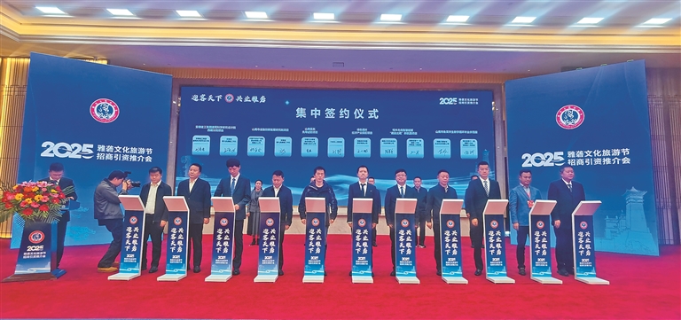 圖為2025雅礱文化旅游節(jié)招商引資推介會集中簽約儀式現(xiàn)場。