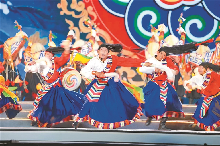 開幕式文藝演出以“共繪同心圓 奮進新山南”為主題,在視覺秀《雅礱紀(jì)事》中拉開帷幕,演出分為“同心共榮 大地歡歌”“同心筑夢 時代交響”“同心奮進 山河共舞”三個篇章,將皖藏兩地節(jié)目進行創(chuàng)新融合,展現(xiàn)了山南60年來的發(fā)展變化。