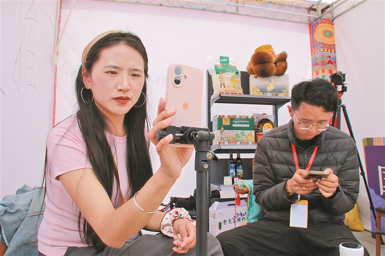 圖為網(wǎng)絡(luò)主播在展會現(xiàn)場直播帶貨。