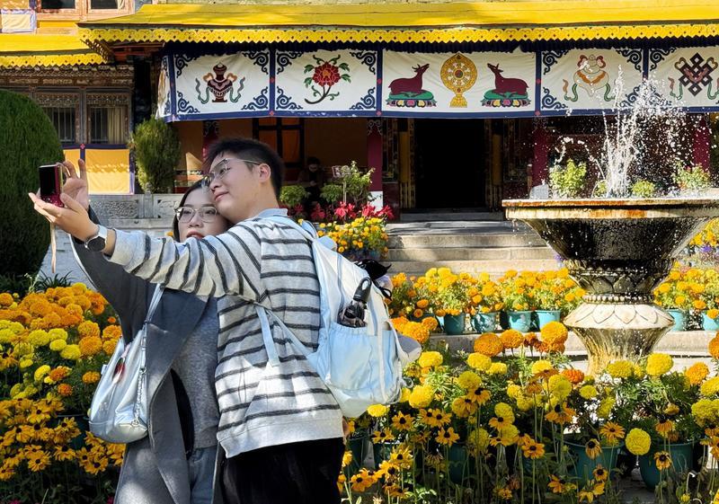“十一”假期,拉薩羅布林卡秋意正濃,金黃的樹(shù)林與古樸建筑相映成趣,吸引眾多游客前來(lái)觀光。園內(nèi),游客們或漫步于落葉之上,或駐足拍照,在絢爛秋色中享受假日閑暇。秋日靜美與游人的歡聲笑語(yǔ)交織,使這里成為假期休閑的熱門(mén)選擇,處處洋溢著歡樂(lè)祥和的節(jié)日氣氛。
