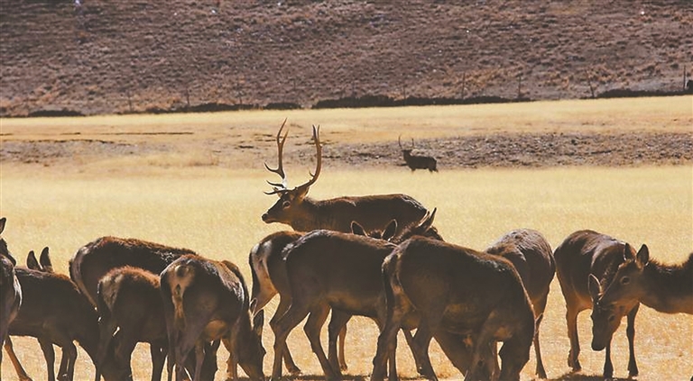棲息在昌都市類烏齊縣野生動(dòng)物保護(hù)區(qū)的馬鹿。記者 丹增群培 攝