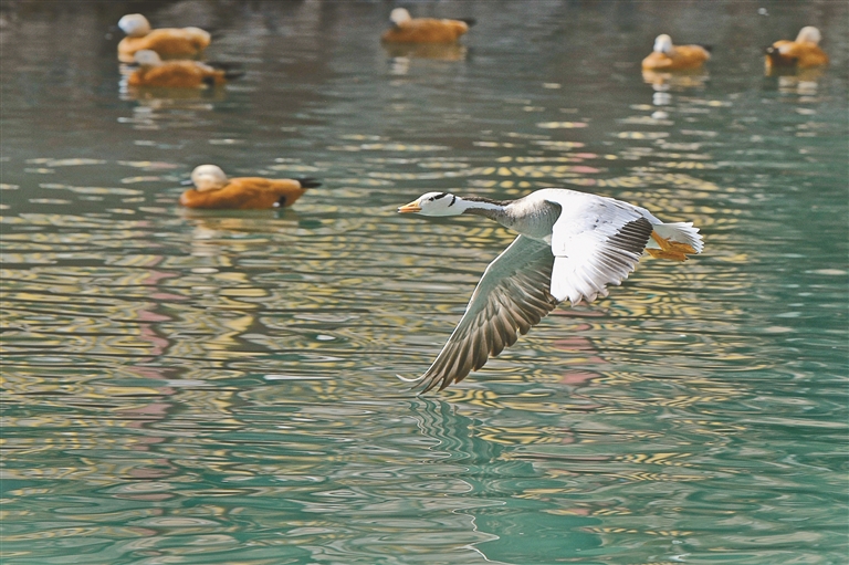 拉薩河畔的國(guó)家一級(jí)保護(hù)動(dòng)物斑頭雁。記者 唐斌 攝