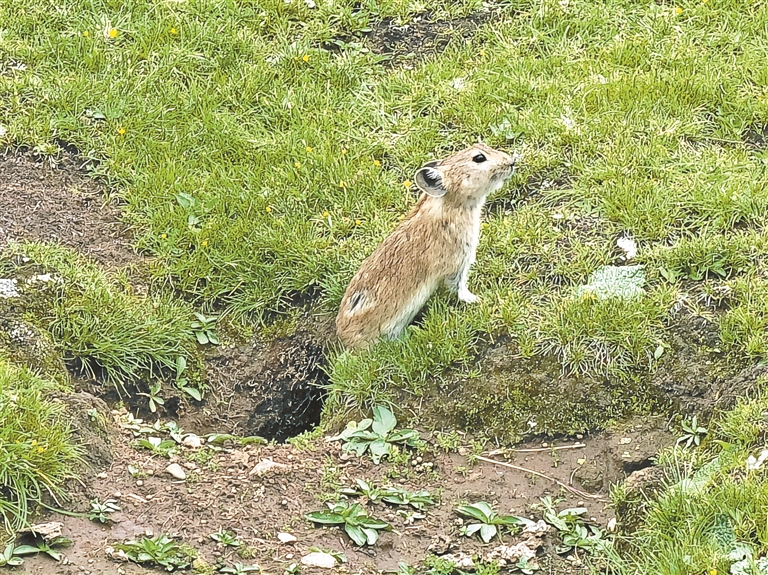 青藏高原特有物種高原鼠兔。記者 丹增群培 攝