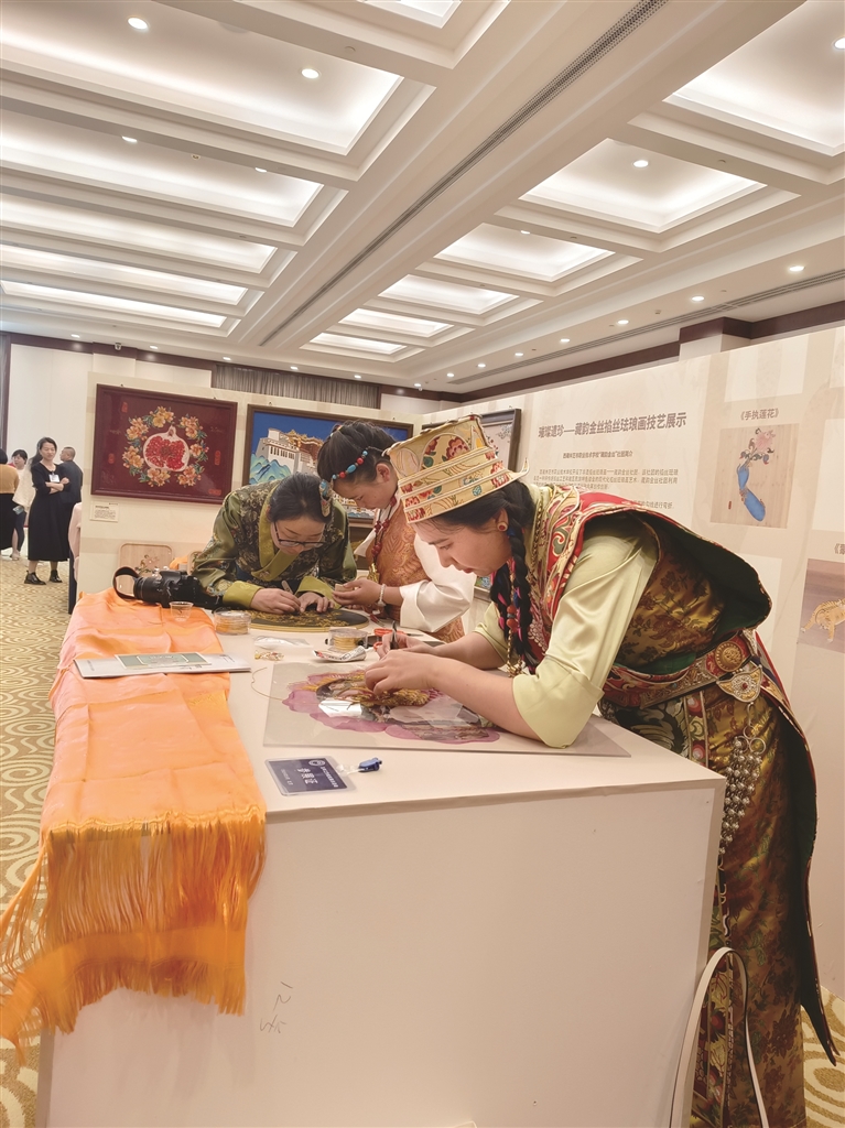 林芝市職業(yè)技術(shù)學(xué)?!安仨嵔鸾z掐絲琺瑯畫”應(yīng)邀參加職業(yè)教育優(yōu)秀非遺教學(xué)成果展。圖由林芝市職業(yè)技術(shù)學(xué)校提供