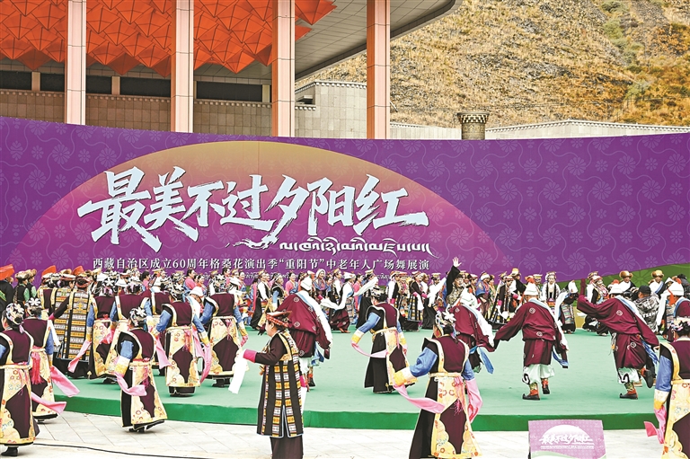 圖為“最美不過夕陽紅”中老年人廣場舞展演現(xiàn)場。本報記者 歐珠次仁 攝