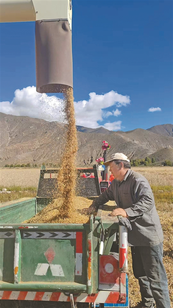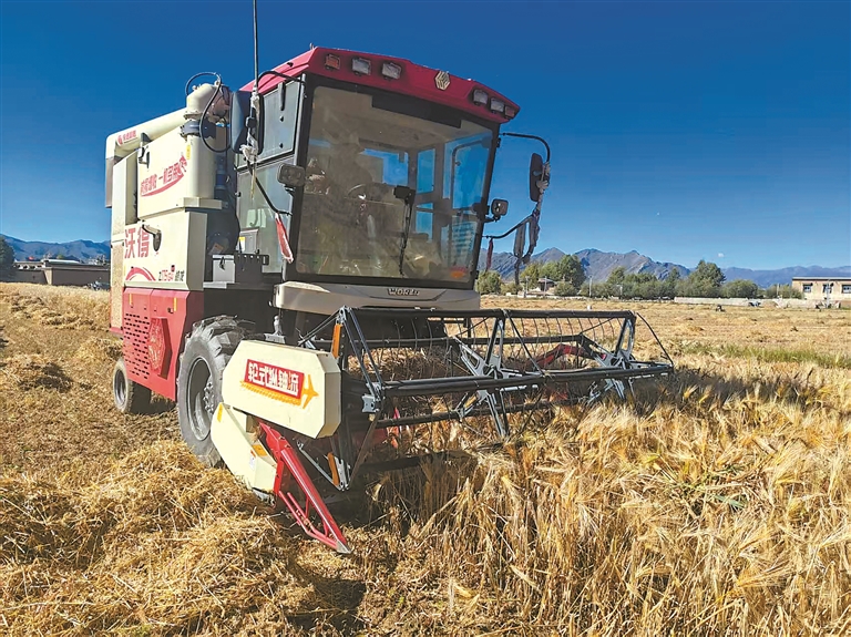 桑珠孜區(qū)東嘎鄉(xiāng)色定村收割機(jī)助力秋收。