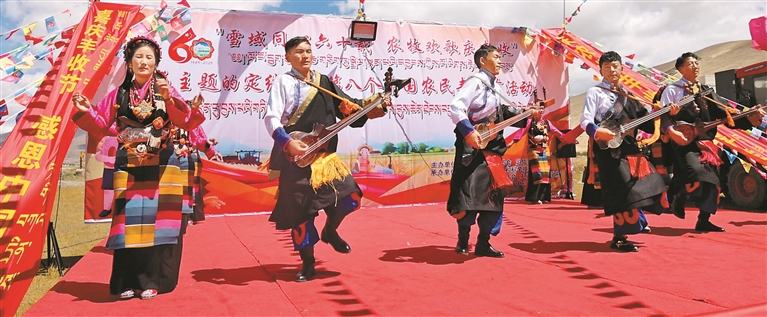 載歌載舞的定結(jié)縣農(nóng)牧民群眾。