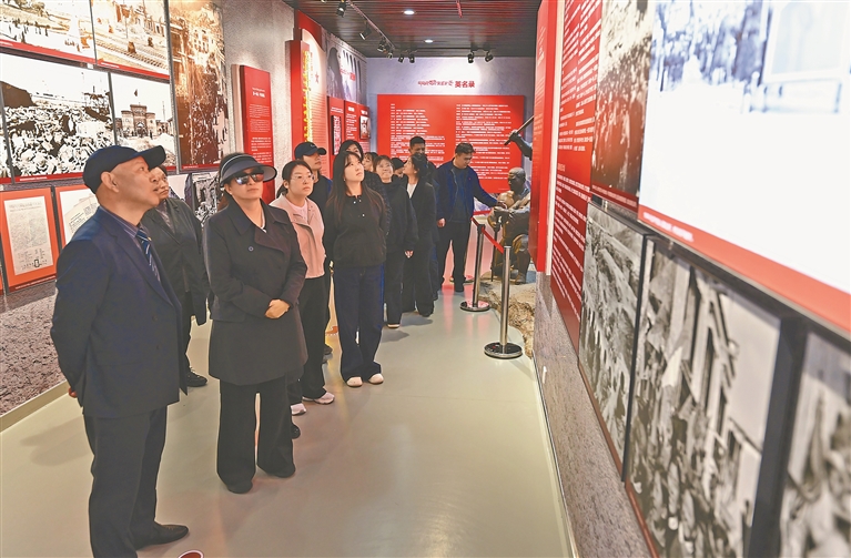 拉薩市退役軍人事務(wù)局的黨員干部在參觀烈士陵園紀(jì)念館。