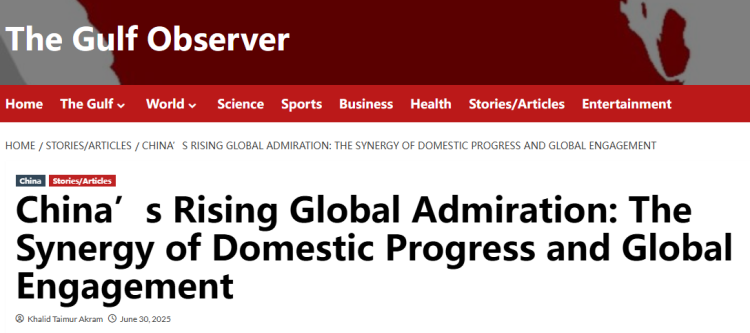 國際在線專稿:外媒“海灣觀察家”(The Gulf Observer)網(wǎng)站6月30日刊發(fā)評(píng)論文章《中國日益受到全球贊賞:國內(nèi)進(jìn)步和全球參與的協(xié)同共振》指出,近年來中國在全球范圍內(nèi)的聲望顯著提升,這一成就得益于其國內(nèi)經(jīng)濟(jì)社會(huì)繁榮發(fā)展和積極參與全球事務(wù)兩者之間形成的協(xié)同效應(yīng)。文章稱,隨著世界各國、各地區(qū)聯(lián)系日漸緊密而動(dòng)蕩沖突不斷,越來越多國家將中國視為全球增長的核心引擎,以及文化活力、政策穩(wěn)定性與戰(zhàn)略遠(yuǎn)見的典范。從古老文明的回響到現(xiàn)代產(chǎn)業(yè)的創(chuàng)新,中國的崛起不僅重塑自身,也正在推動(dòng)全球敘事和發(fā)展方向朝著更加包容、均衡與合作的體系演進(jìn)。