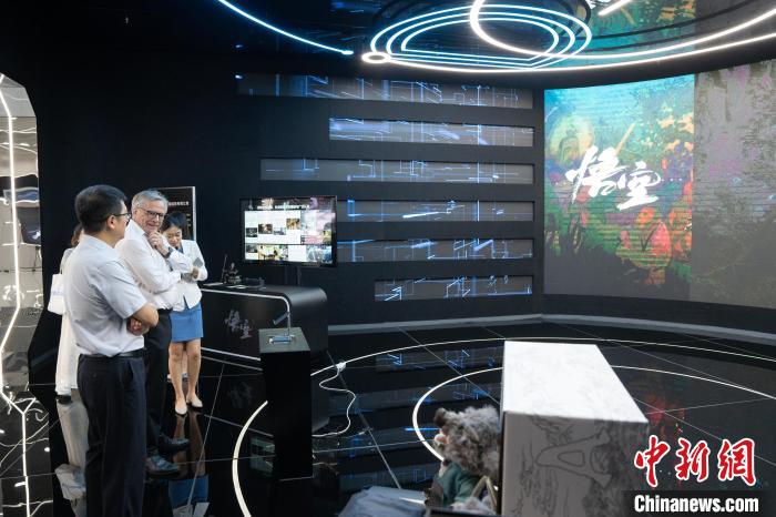 7月14日,外籍嘉賓在杭州未來科技城城市展館了解游戲《黑神話:悟空》?!蔷恪z