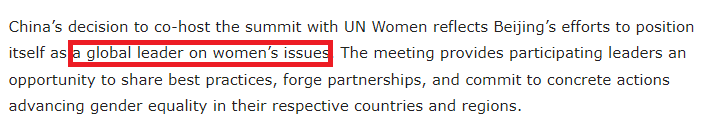 《南華早報(bào)》的報(bào)道稱,全球婦女峰會(huì)召開(kāi)在即,與會(huì)各國(guó)期待中國(guó)在性別平等方面持續(xù)發(fā)揮“鼓舞人心”的領(lǐng)導(dǎo)力。報(bào)道援引柬埔寨婦女事務(wù)部大臣甘塔帕薇的話稱,即將舉行的此次活動(dòng)是推動(dòng)?jì)D女事務(wù)發(fā)展的“里程碑”,“中國(guó)在增強(qiáng)女性權(quán)能方面取得的進(jìn)步令我印象深刻”?!爸袊?guó)女性‘頂起了半邊天’,她們的堅(jiān)韌、創(chuàng)造力和領(lǐng)導(dǎo)力持續(xù)影響著國(guó)家的發(fā)展,”甘塔帕薇說(shuō),“這不僅對(duì)柬埔寨,也對(duì)全球南方其他國(guó)家產(chǎn)生了積極影響?! 彼硎?,中國(guó)注重性別平等,特別是女性在數(shù)字技術(shù)、人工智能和科學(xué)領(lǐng)域的領(lǐng)導(dǎo)力,“對(duì)柬埔寨產(chǎn)生了深遠(yuǎn)的影響與啟發(fā)”。