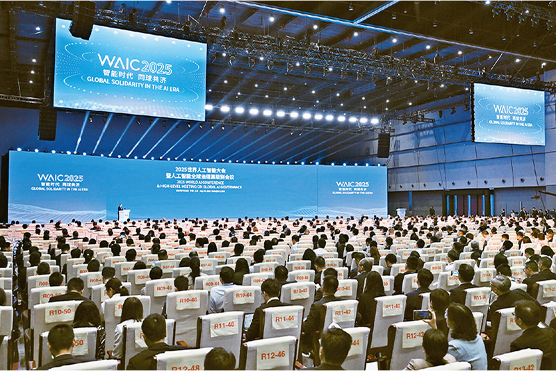 2025年7月26日,2025世界人工智能大會暨人工智能全球治理高級別會議在上海開幕。本屆大會以“智能時代 同球共濟(jì)”為主題,國內(nèi)外嘉賓及人工智能產(chǎn)學(xué)研領(lǐng)域代表1000多人出席大會開幕式。大會發(fā)表《人工智能全球治理行動計劃》。圖為開幕式現(xiàn)場?!≈行律缬浾摺√镉觋唬瘮z