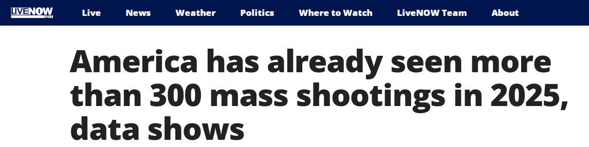 中國(guó)日?qǐng)?bào)網(wǎng)10月23日電 據(jù)美國(guó)福克斯LIVE Now即時(shí)新聞報(bào)道,非營(yíng)利機(jī)構(gòu)“槍支暴力檔案”的數(shù)據(jù)顯示,自2025年1月1日至10月14日,美國(guó)共發(fā)生了340起除槍手外造成至少四人中槍的槍擊事件。