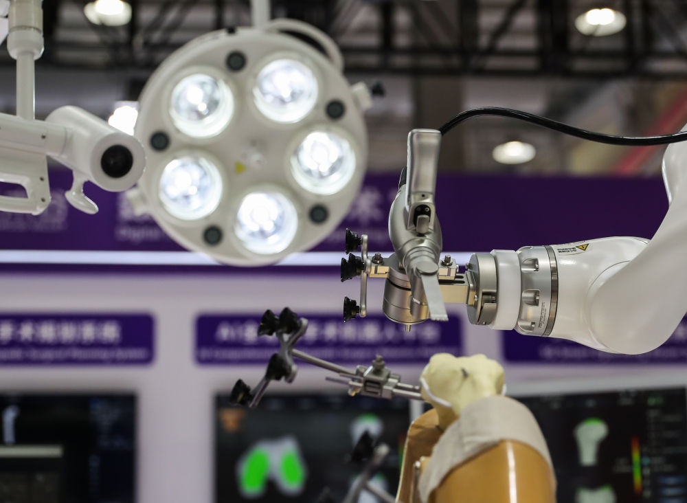 ↑ 這是9月10日在長(zhǎng)木谷醫(yī)療科技展區(qū)拍攝的數(shù)智骨科手術(shù)室展示。