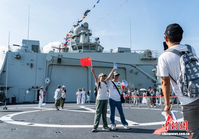 10月1日,停泊于中國人民解放軍駐香港部隊昂船洲軍營的海軍戚繼光艦(舷號83)和沂蒙山艦(舷號988)舉行艦艇開放活動,接受市民登艦參觀,軍民共慶新中國成立76周年。圖為眾多香港市民登上戚繼光艦參觀。 中新社記者 侯宇 攝