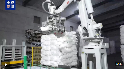 在這個生產(chǎn)線上,工人有了數(shù)字“工友”。面粉的分揀靠的是自動碼垛機(jī),也就是一個超級機(jī)械手來完成。而面粉“坐著”螺旋式的輸送機(jī),進(jìn)入到分揀環(huán)節(jié)。
