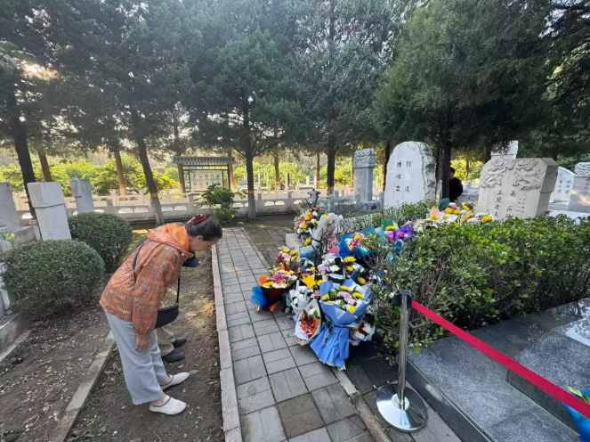 “我看了《沉默的榮耀》,想過來(lái)看看吳石將軍?!痹诒本└L锕归T崗處,不少市民在登記時(shí)都會(huì)這樣說。吳石將軍的墓前,上百束鮮花層疊擺放,已經(jīng)形成了一道“鮮花墻”。