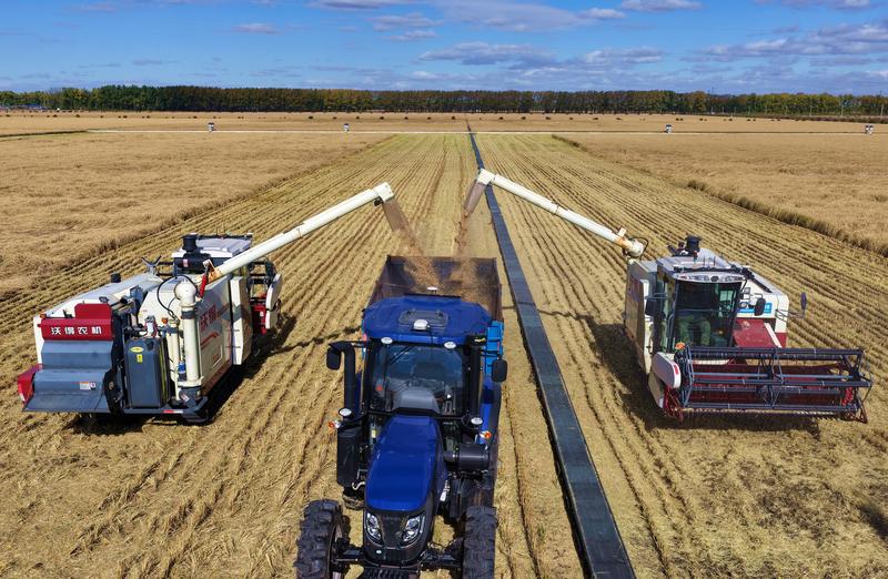 “十四五”時(shí)期,全國(guó)糧食年產(chǎn)量穩(wěn)定在1.3萬(wàn)億斤以上,2024年首次邁上1.4萬(wàn)億斤新臺(tái)階,人均糧食占有量達(dá)到500公斤,高于國(guó)際公認(rèn)的人均400公斤糧食安全線,做到了谷物基本自給、口糧絕對(duì)安全。今年全國(guó)夏糧產(chǎn)量2994.8億斤,是歷史第二高產(chǎn)年;截至10月10日,全國(guó)秋糧收獲已過(guò)五成,各地正全力以赴做好搶收搶烘工作,筑牢豐收根基。