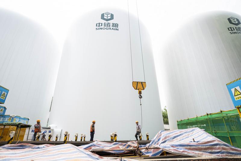 2025年5月6日在中儲(chǔ)糧長(zhǎng)沙直屬庫(kù)拍攝的氣膜糧倉(cāng)建設(shè)施工現(xiàn)場(chǎng)。新華社記者 陳思汗 攝