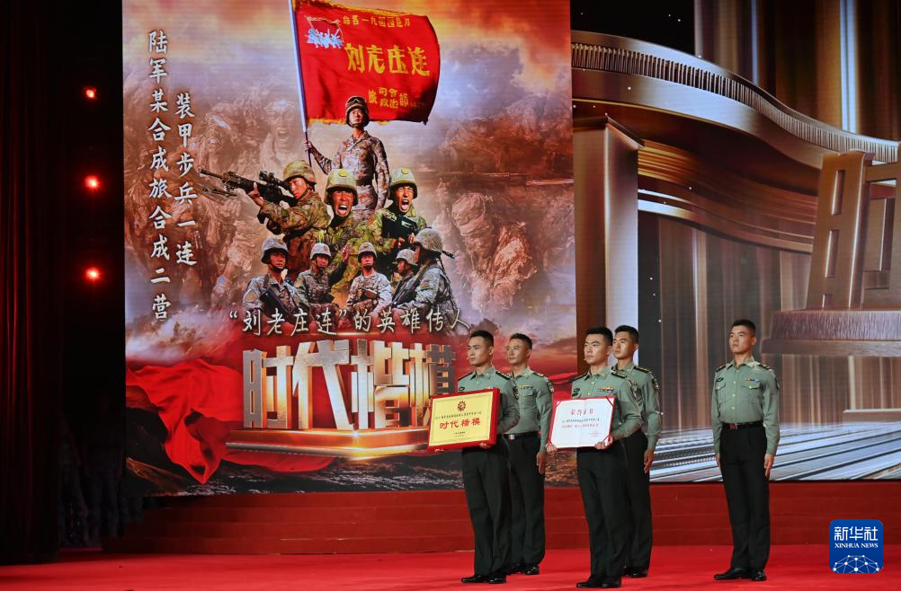 中央宣傳部在授予“時(shí)代楷?!狈Q號(hào)的決定中指出,“劉老莊連”是有靈魂、有本事、有血性、有品德的新時(shí)代革命軍人的優(yōu)秀代表,他們的先進(jìn)事跡充分彰顯了人民軍隊(duì)堅(jiān)定維護(hù)核心、堅(jiān)決聽黨指揮的政治本色和血脈傳承,生動(dòng)詮釋了全軍官兵不畏強(qiáng)敵、敢打必勝的精神品質(zhì),集中展現(xiàn)了新時(shí)代人民軍隊(duì)的好樣子、革命軍人的好樣子。希望廣大黨員干部特別是部隊(duì)官兵以“時(shí)代楷?!睘榘駱樱钊雽W(xué)習(xí)貫徹習(xí)近平新時(shí)代中國(guó)特色社會(huì)主義思想,深入貫徹習(xí)近平強(qiáng)軍思想,深刻領(lǐng)悟“兩個(gè)確立”的決定性意義,增強(qiáng)“四個(gè)意識(shí)”、堅(jiān)定“四個(gè)自信”、做到“兩個(gè)維護(hù)”,貫徹軍委主席負(fù)責(zé)制,傳承和弘揚(yáng)偉大抗戰(zhàn)精神,堅(jiān)定理想信念、厚植家國(guó)情懷,為如期實(shí)現(xiàn)建軍一百年奮斗目標(biāo)、加快把人民軍隊(duì)建成世界一流軍隊(duì),為以中國(guó)式現(xiàn)代化全面推進(jìn)強(qiáng)國(guó)建設(shè)、民族復(fù)興偉業(yè)而團(tuán)結(jié)奮斗。