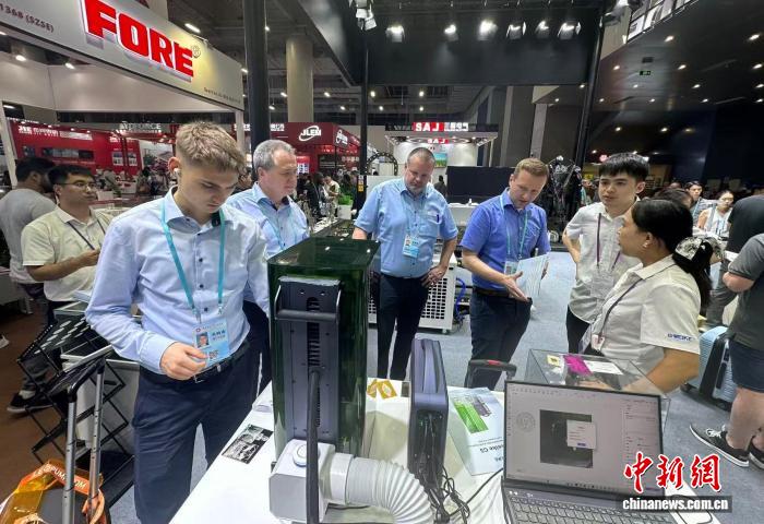 10月16日,第138屆廣交會繼續(xù)在廣州舉行。圖為境外采購商正在了解中國企業(yè)展出的激光打標(biāo)機(jī)。中新社記者 程景偉 攝