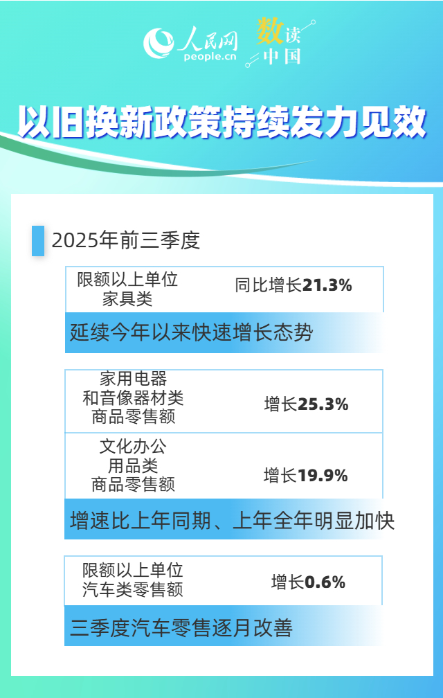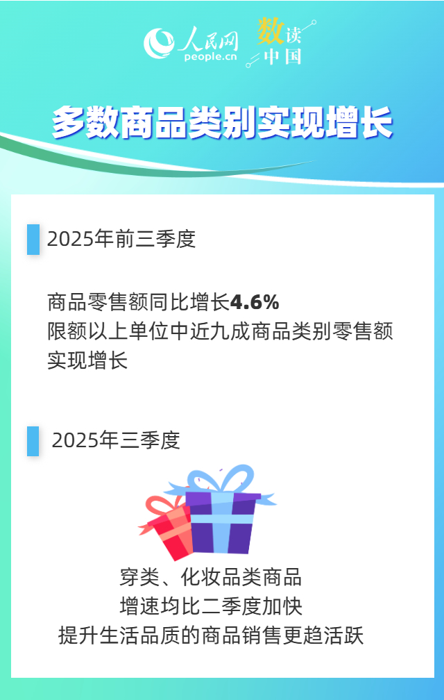 今年前三季度,以舊換新等提振消費(fèi)系列政策措施落地見效,消費(fèi)新業(yè)態(tài)、新模式、新場景不斷拓展,各類新型消費(fèi)較快發(fā)展。商品和服務(wù)供給持續(xù)優(yōu)化,消費(fèi)需求穩(wěn)步釋放,消費(fèi)市場擴(kuò)容提質(zhì)。透過幾組數(shù)據(jù),一起感受消費(fèi)“購物車”中的市場活力。