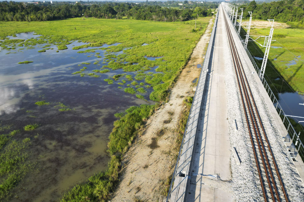 走進馬來西亞彭亨州的馬東鐵項目建設(shè)現(xiàn)場,一幅人與自然和諧共生的畫卷徐徐展開:筆直的鐵路在茂密雨林中延伸,鋼鐵軌道穿越濕地秘境,數(shù)公里長的橋梁橫跨原野,隧道出口處綠意盎然,盤旋的鳥兒以及嬉戲的野鴨相映成趣……一幕幕工程與自然交融的生動圖景讓人印象深刻。