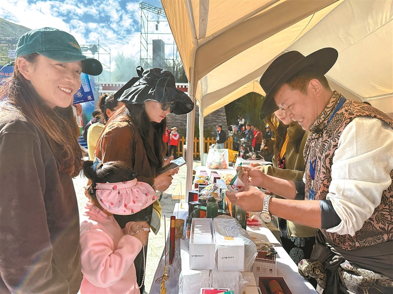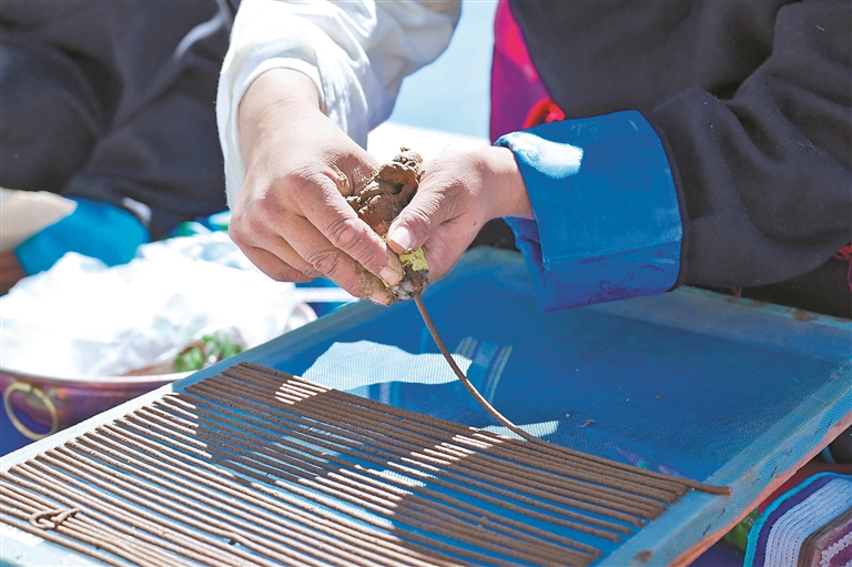“今天我們帶來了6種藏香文創(chuàng)產(chǎn)品,分別有安神、提神、清潔空氣等系列,這些年我們除了在線下銷售,還要感謝尼木縣委、縣政府積極與線上各大平臺接洽,讓我們的藏香通過線上銷售,走出了尼木,讓北京、南京、天津等城市的客戶通過線上購買。所有藏香都是由縣委、縣政府組織的易地搬遷戶制作,這讓不少群眾不僅能就近就業(yè),還能照顧家里。特別感謝黨和政府對藏香保護和發(fā)展所做的各項工作。”縣級非物質文化遺產(chǎn)傳承人洛桑旺堆在活動現(xiàn)場說。