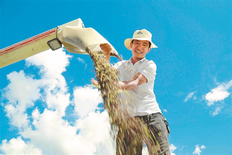 圖為該縣唐加鄉(xiāng)莫沖村村民臉上露出豐收的喜悅。通訊員 洛克 記者 唐斌 攝