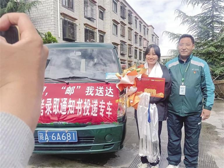 考生拿到錄取通知書(shū)。 圖由西藏郵政提供