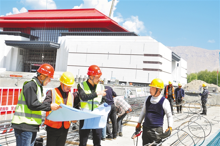 五月的第一天,日光城破曉,西藏革命建設(shè)改革紀(jì)念館南廣場暨地下停車場項(xiàng)目建設(shè)現(xiàn)場已是一派熱火朝天的施工景象:旋挖鉆機(jī)、挖掘機(jī)、吊車等施工車輛往來穿梭,各種機(jī)械設(shè)備轟鳴聲此起彼伏,焊花飛濺、弧光閃閃,上百名建設(shè)者們在工地上揮汗奮戰(zhàn)、干勁十足。