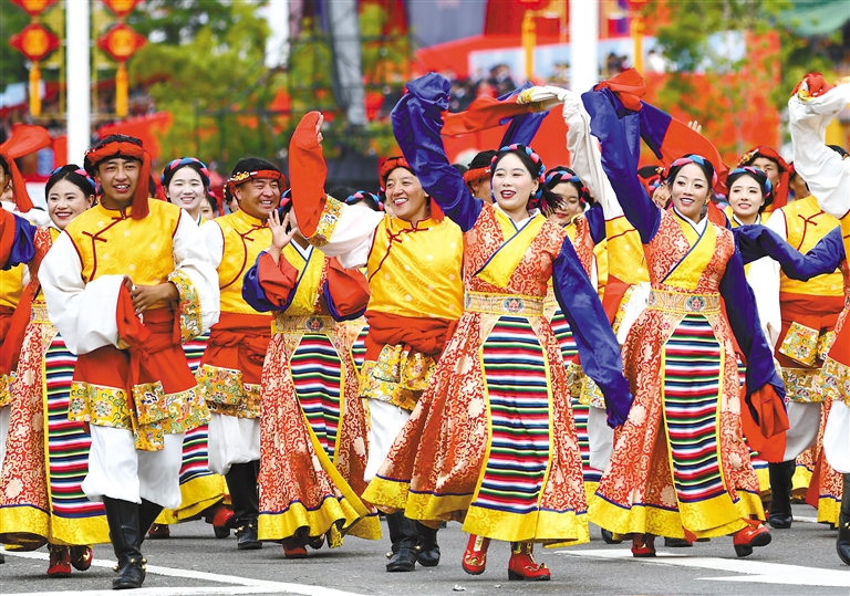 日喀則方隊(duì)。本網(wǎng)記者 旦增蘭澤 攝