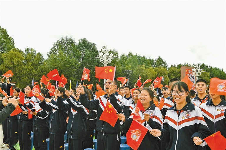 臺下的觀眾揮舞國旗。本網(wǎng)記者 旦增蘭澤 攝