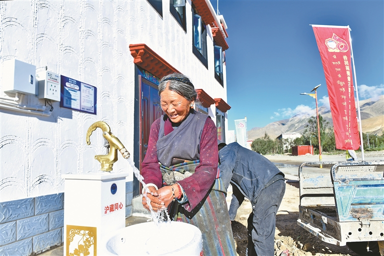 8月7日,拉姆一家分到一棟110平方米的新房。當(dāng)她擰開锃亮的水龍頭,熱水涌出的瞬間,淚水奪眶而出:“以前兒子沒法在家里洗澡,現(xiàn)在能了,特別開心?!边@簡單的心聲,道出森嘎村600多名村民共同的喜悅。