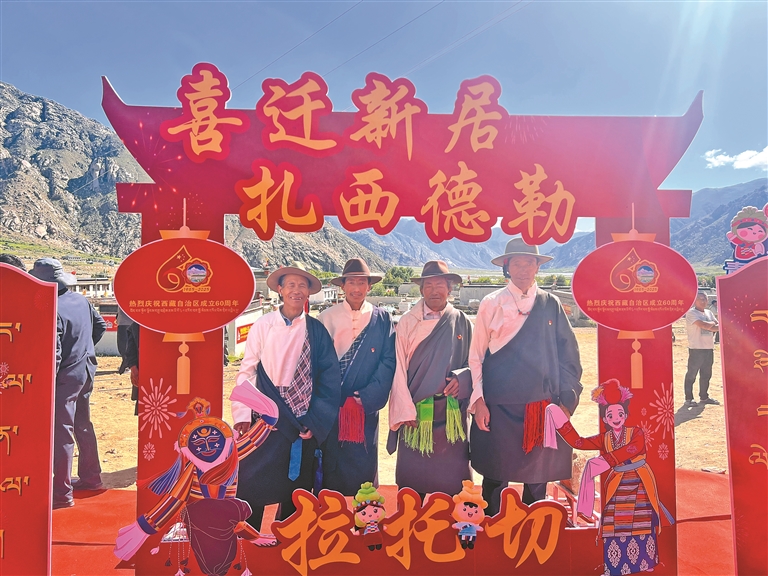 昂仁縣達(dá)局鄉(xiāng)珠吾村搬遷群眾合影留念。昂仁縣融媒體供圖