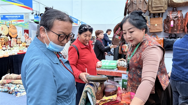 展會(huì)現(xiàn)場人頭攢動(dòng),熱鬧非凡。150家參展商帶來的特色產(chǎn)品鋪滿了各個(gè)展位,空氣中彌漫著多元?dú)庀?。法國紅酒的醇厚酒香、印度尼西亞咖啡的濃郁焦香、伊朗藏紅花的獨(dú)特芬芳交織在一起,與西藏本土青稞制品的麥香、高原蜂蜜的甜香相互映襯。在巴基斯坦展位前,參展商Asif正熱情地向顧客展示手工羊毛地毯,“我已經(jīng)連續(xù)三年參加,之前銷量都很好,這次帶來的地毯紋樣融入了藏式元素,希望能更受歡迎。”