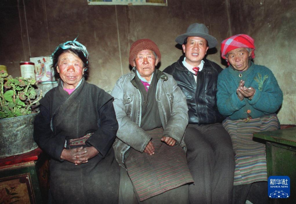 圖為時任拉薩副市長孔繁森(右二)和墨竹工卡縣敬老院內(nèi)的三位孤寡老人的合影。