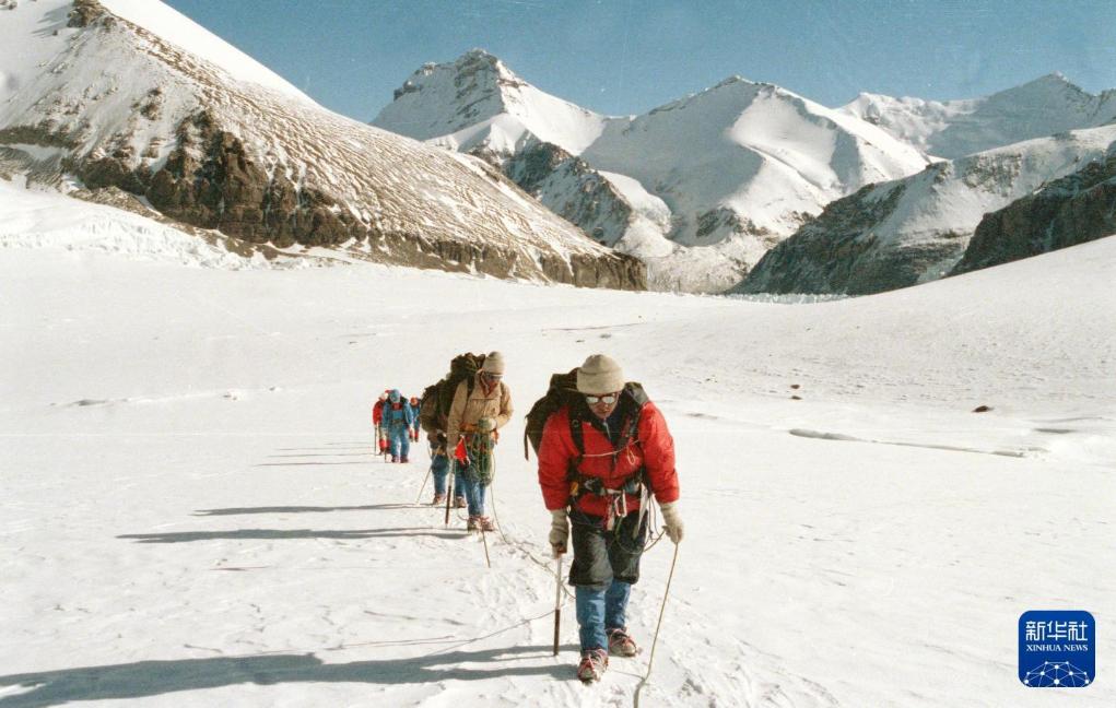 1986年5月10日至11日,中國—日本長野聯(lián)合登山隊的24名隊員分兩批成功登頂位于西藏定日縣內(nèi)海拔7541米的章子峰。圖為登山隊員結(jié)組向峰頂進(jìn)發(fā)。