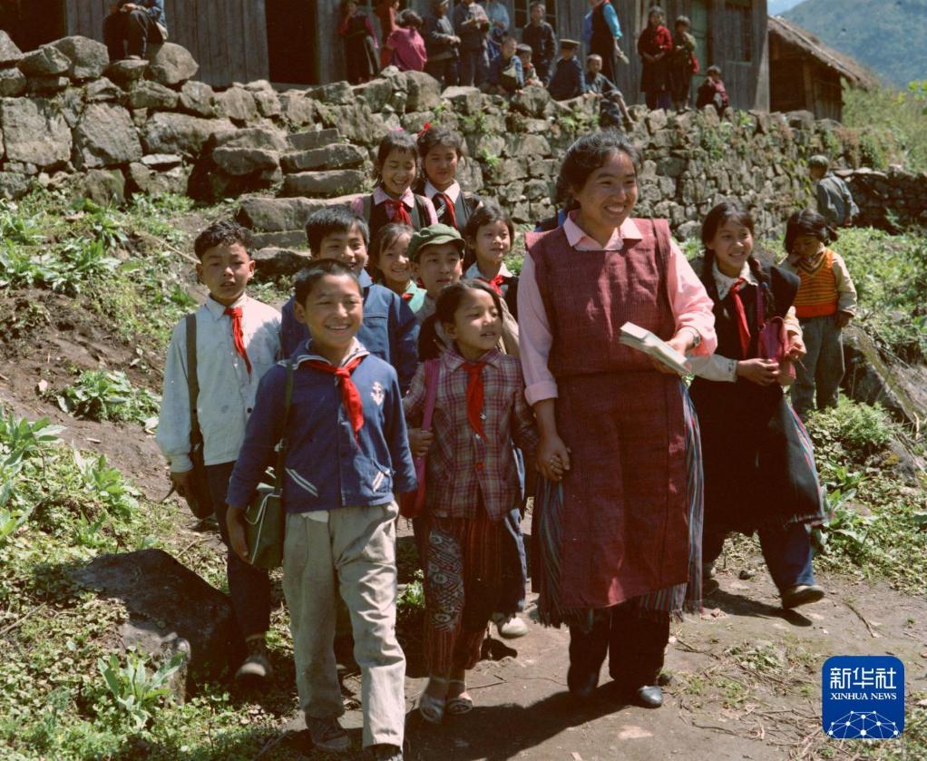 墨脫縣一所小學(xué)的孩子們和他們的老師。(1983年11月22日發(fā))