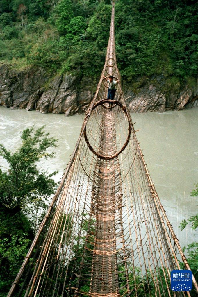 圖為1983年拍攝的墨脫縣的藤網(wǎng)橋。(1983年11月22日發(fā))