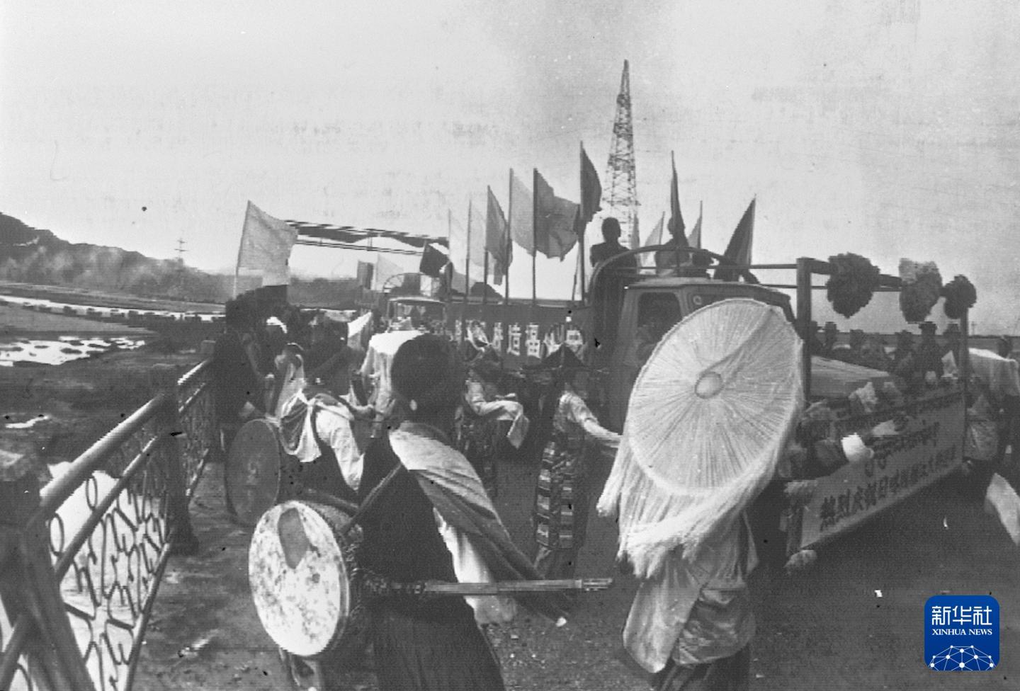 1995年8月27日,西藏日喀則雅魯藏布江大橋建成通車。它的建成結(jié)束了日喀則地區(qū)無大橋、長期靠牛皮船渡河的歷史。這是當(dāng)?shù)厝嗣褫d歌載舞,慶祝大橋建成通車。