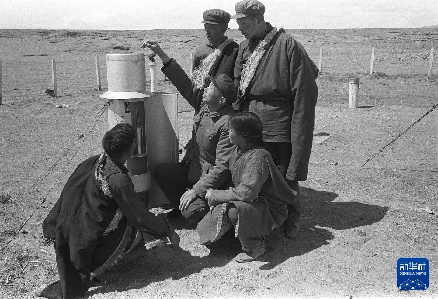 1976年陳金水在西藏海拔4800多米的安多氣象站,手把手地向年輕的藏族氣象工作者傳授技術(shù)。
