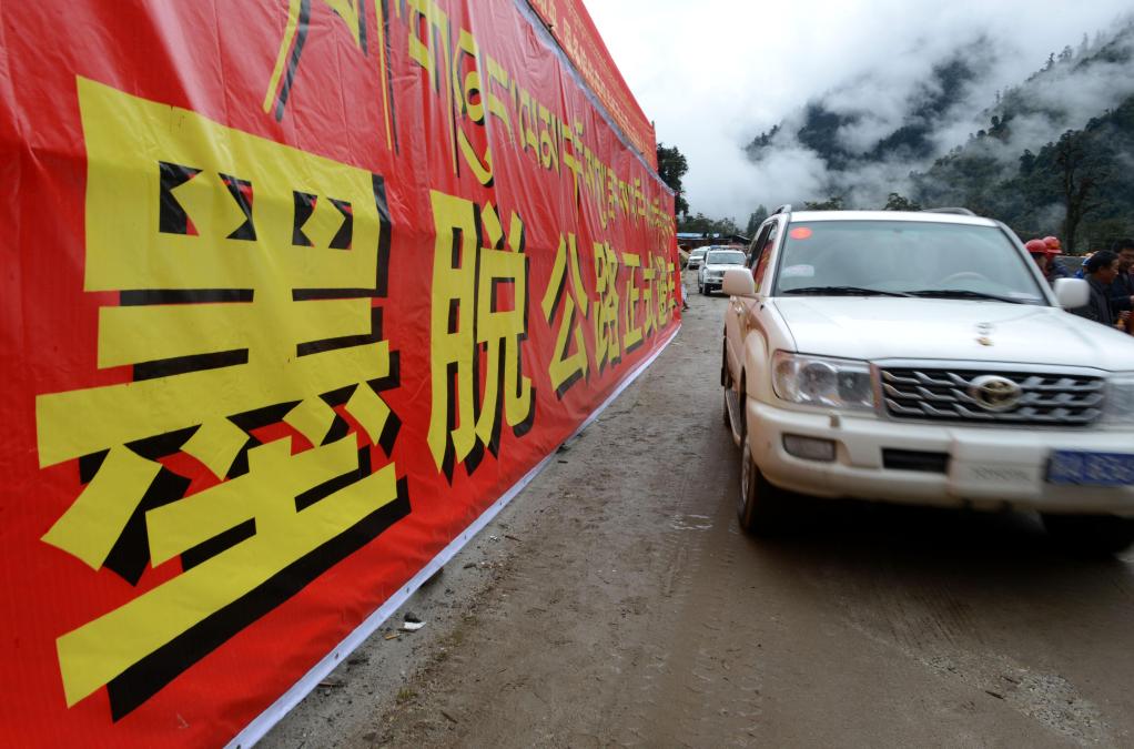 2013年10月31日,墨脫公路正式通車,這標(biāo)志著墨脫將正式擺脫“全國唯一不通公路縣”的歷史。這是車輛駛進(jìn)墨脫。新華社記者 覺果 攝